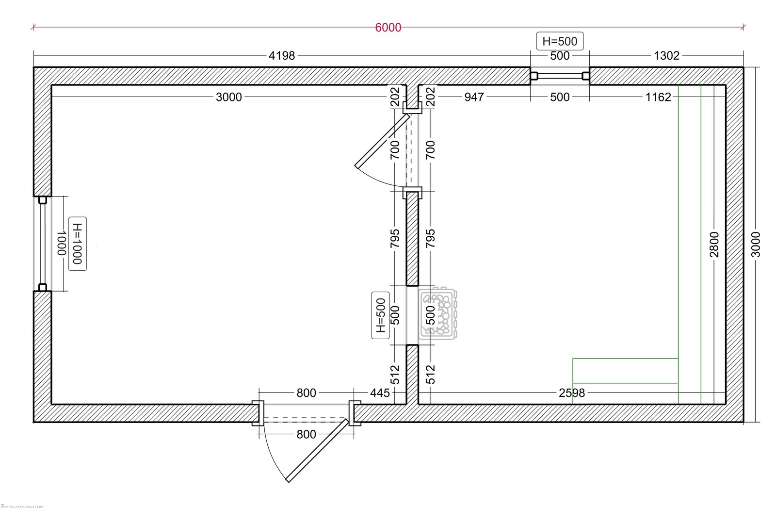 | Чистовой пол: | 27 мм., в помывочной проливные полы |