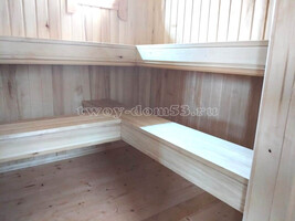 | Парное отделение: | стены и потолок в парилке обиваются осиновой вагонкой, пароизоляция - фольга, оборудованы полки в 2 яруса. |