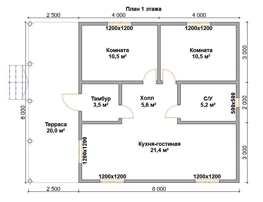 К21 - каркасный дом 8х11.5 м. с террасой.