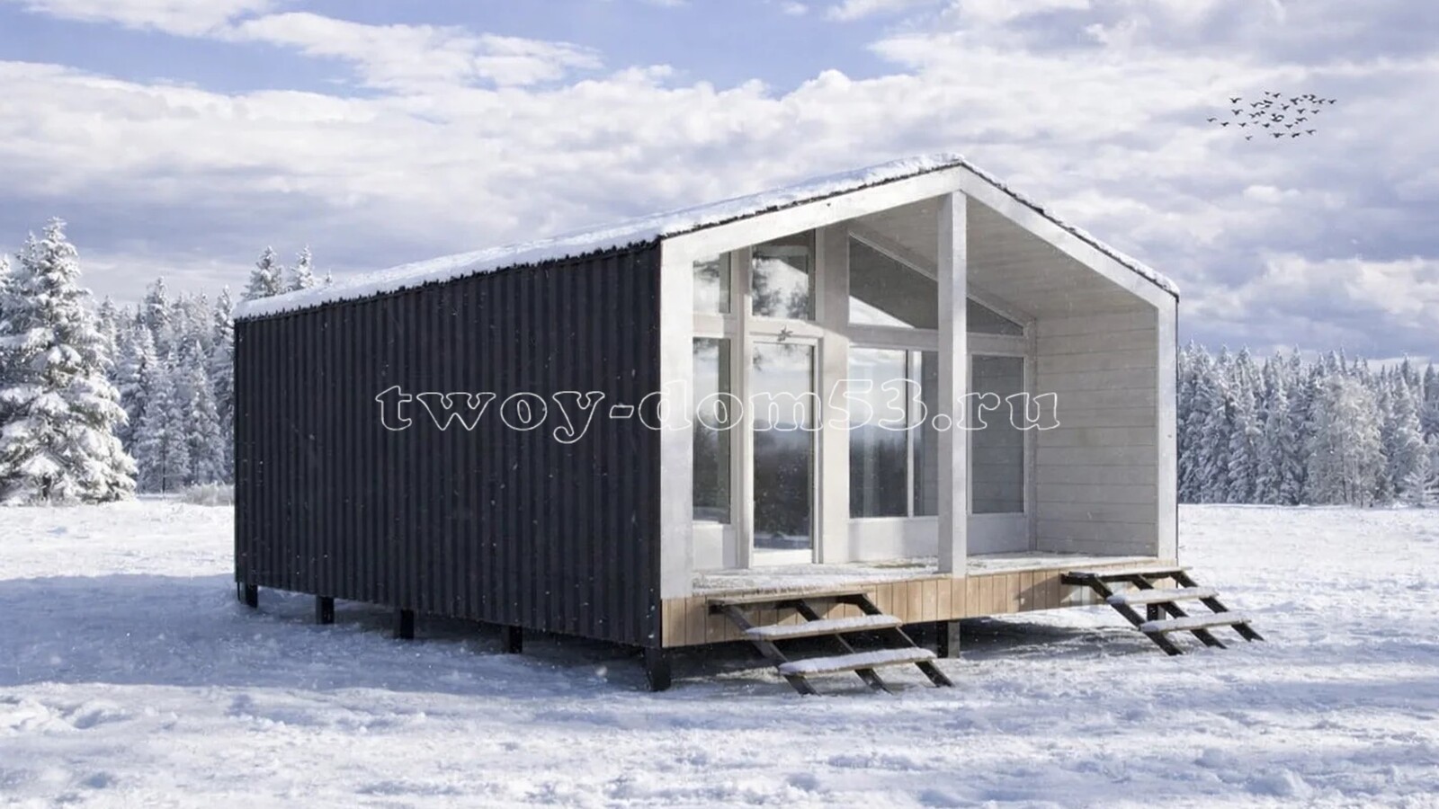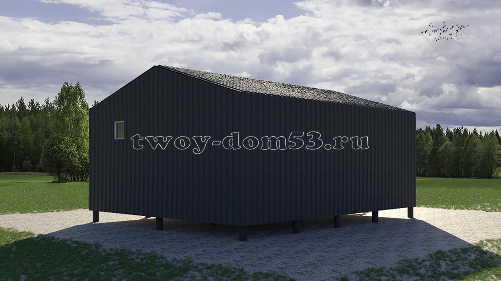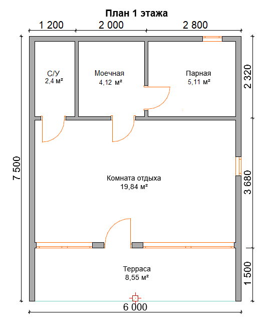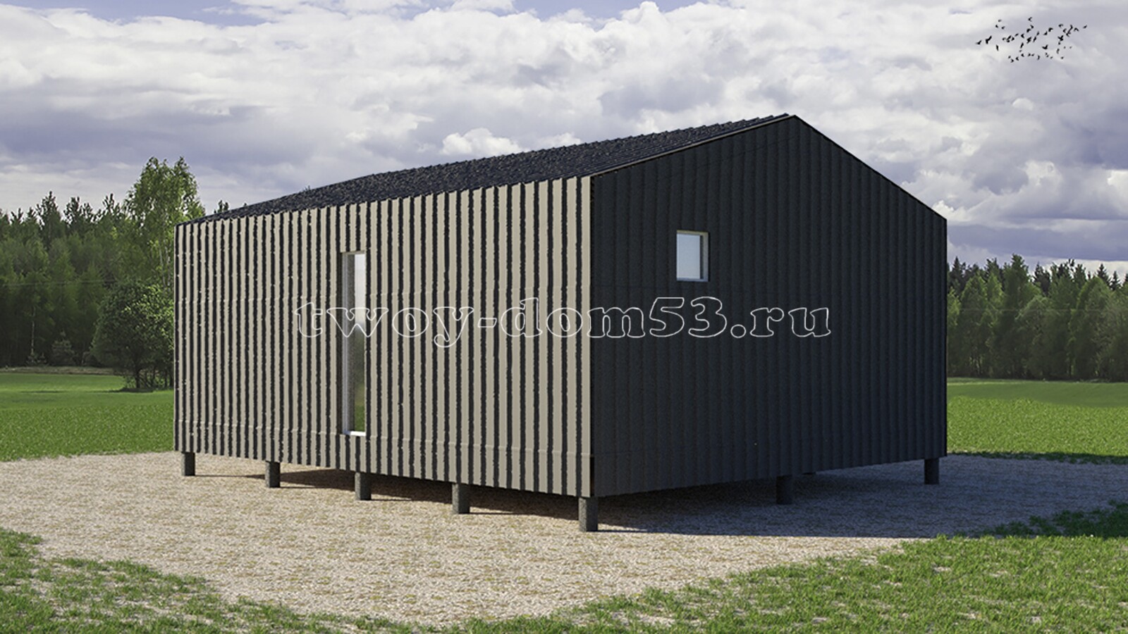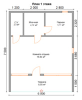КБ11 - каркасная баня (барн) 6х7.5 м. с террасой.